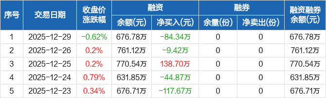 创业板ETF南方:融资净偿还84.34万元,融资余额676.78万元(12-29)