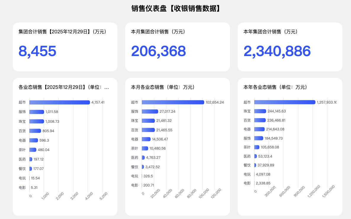 12月30日,胖东来集团公布的销量数据显示,截至2025年12月29日,2025年集团合计销售额约234.09亿元,其中超市业态销量额达到125.79亿元,珠宝业态销量额达到24.41亿元。