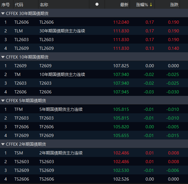 国债期货收盘多数上涨