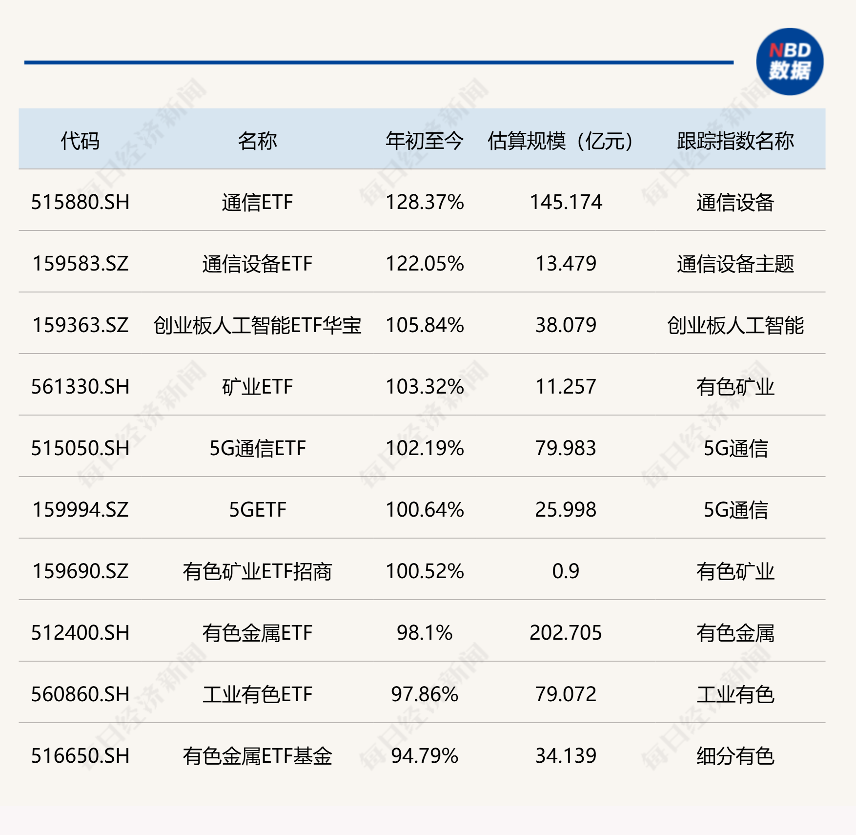 其中,两只通信相关ETF今年累计涨幅超120%。
