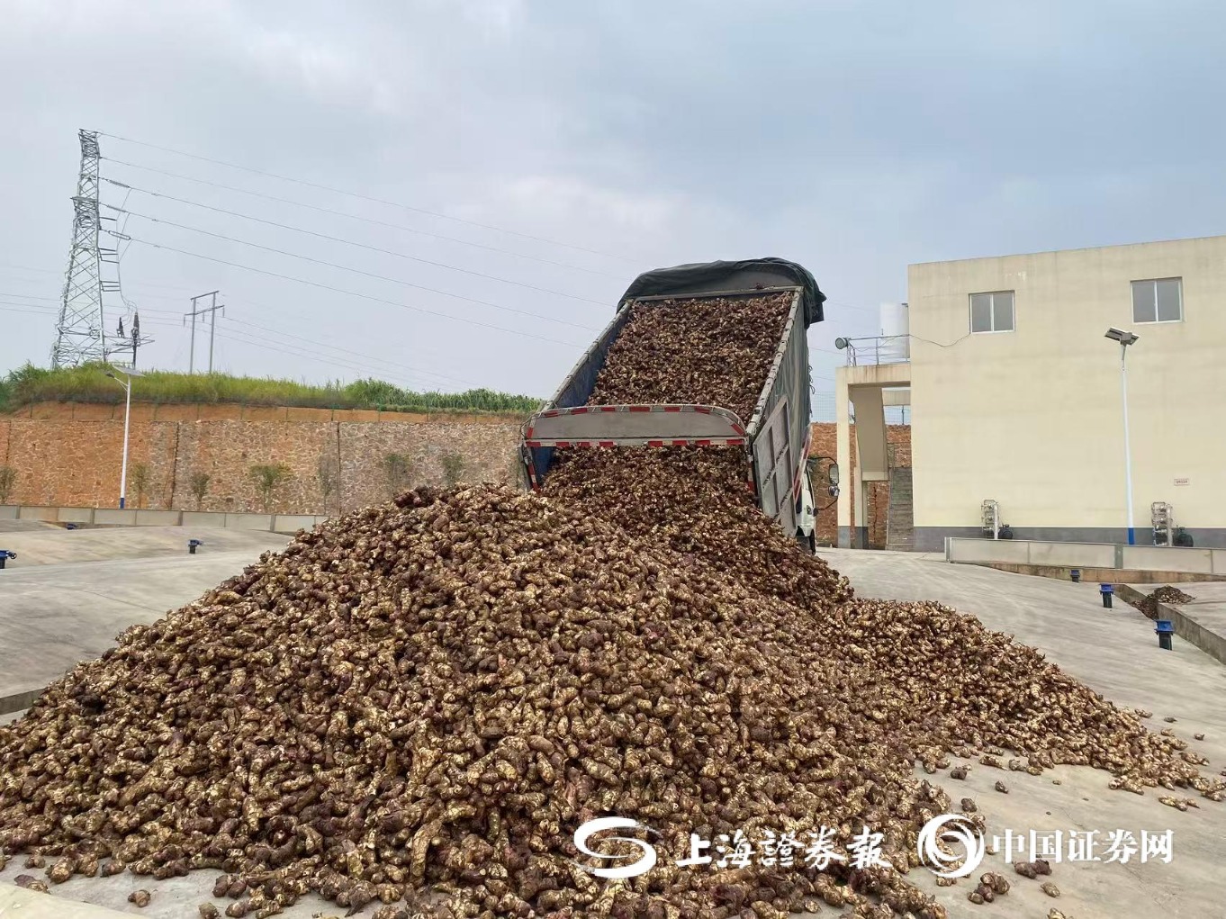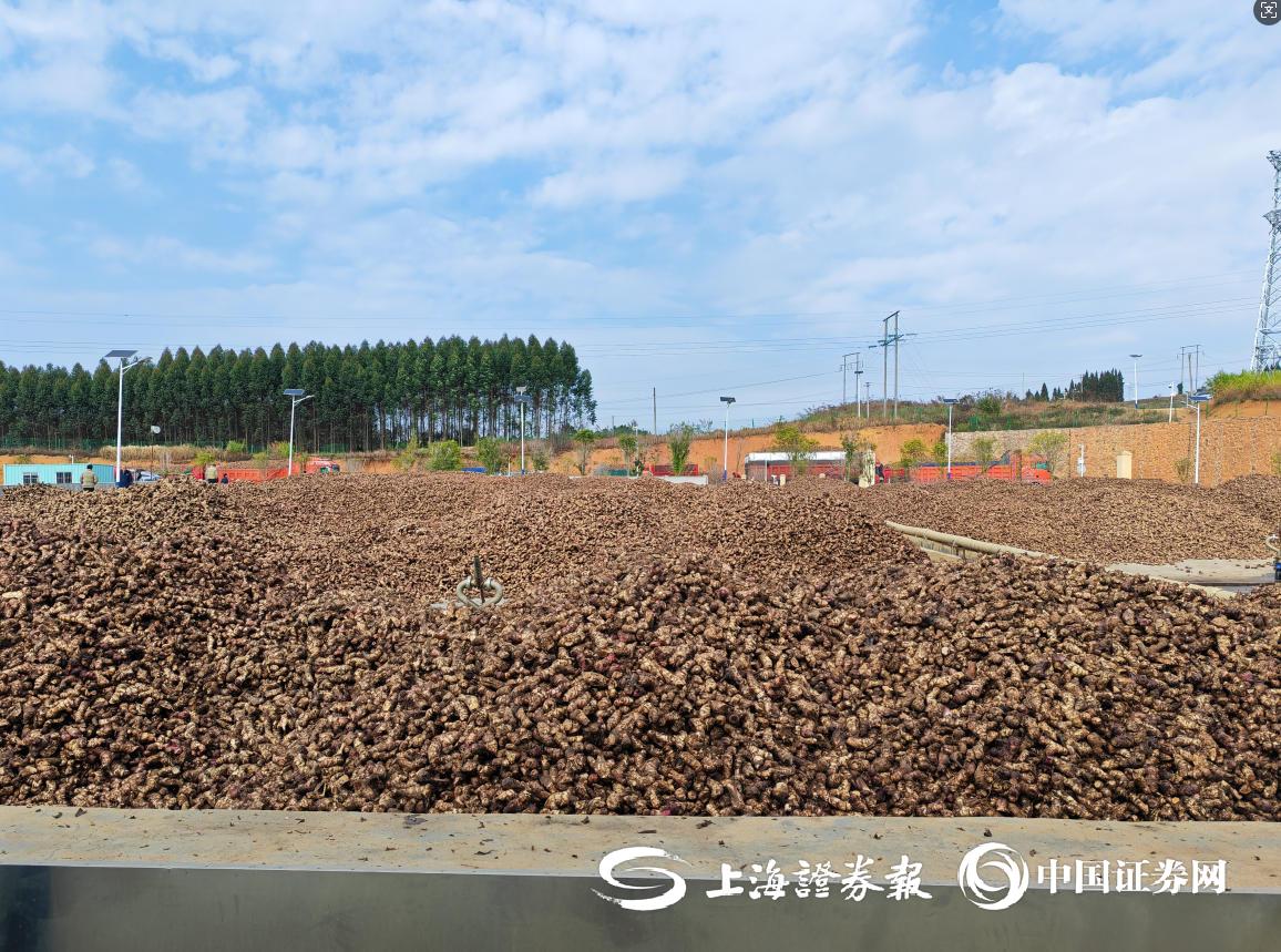 记者走进贵州鑫昌淀粉科技有限公司(简称“鑫昌公司”)的堆场看到,已经卸货的芭蕉芋堆成小山。