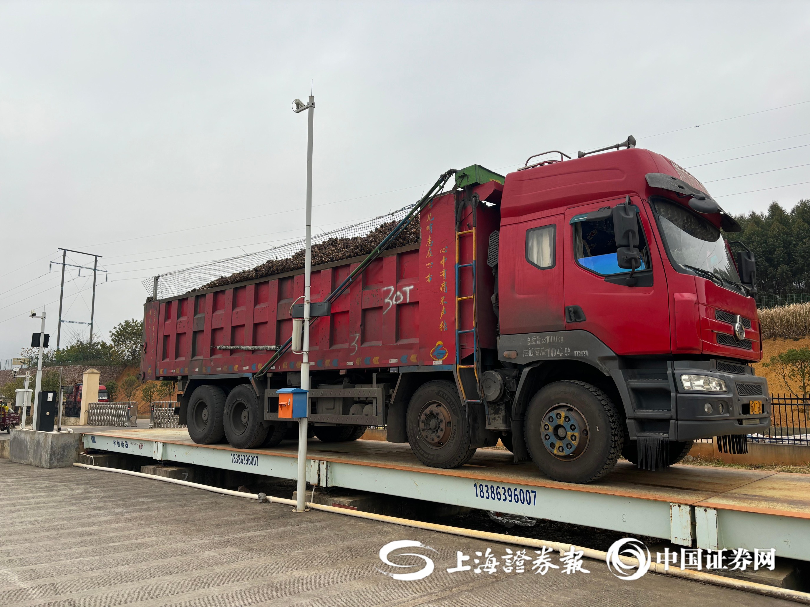 图说:满载芭蕉芋的车辆在过磅。记者周亮摄