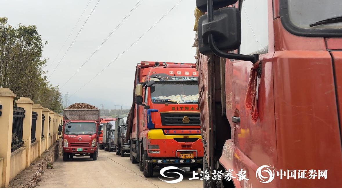 而在鑫昌公司门前,满载着芭蕉芋的车辆在进场的道路上排成了一条车龙。农户们迫不及待地进入厂区询问芭蕉芋当天的收购价格。