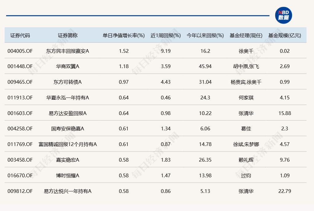 3.单日债基涨跌幅榜