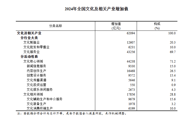 国家统计局:2024年全国文化及相关产业增加值占GDP比重为4.61%