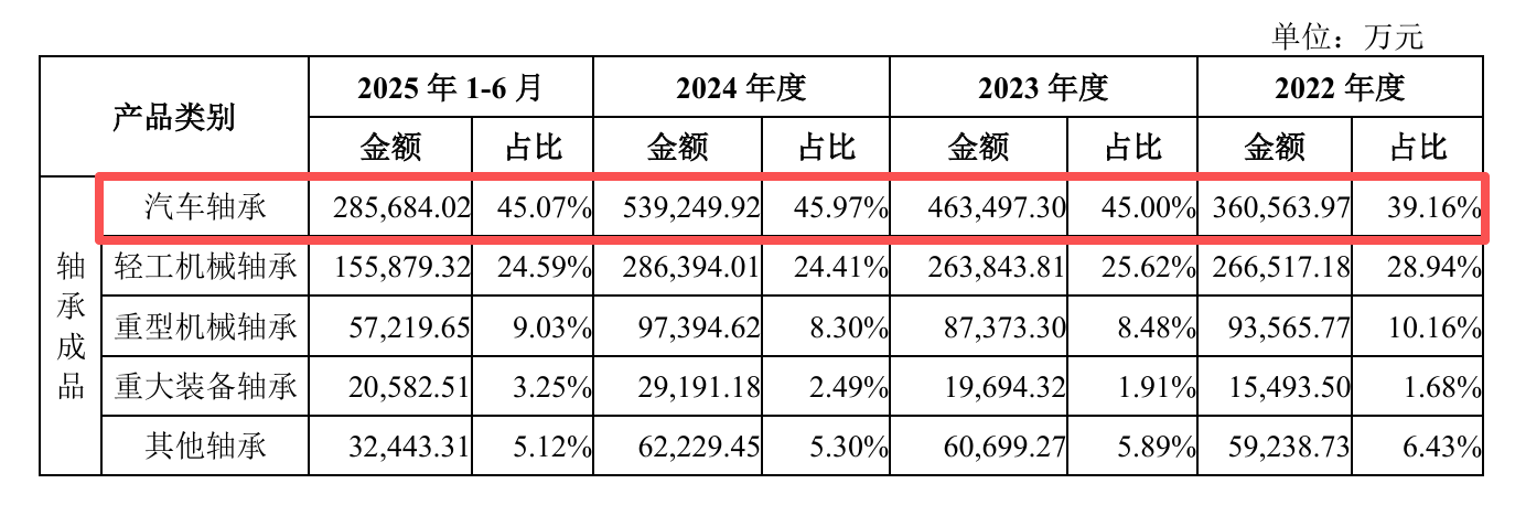 汽车轴承贡献45%营收