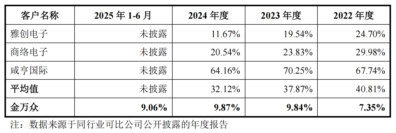 招股书显示,报告期内,公司前五大客户收入占比分别为7.35%、9.84%、9.87%以及9.06%,公司客户结构整体呈现小额、分散的特点。
