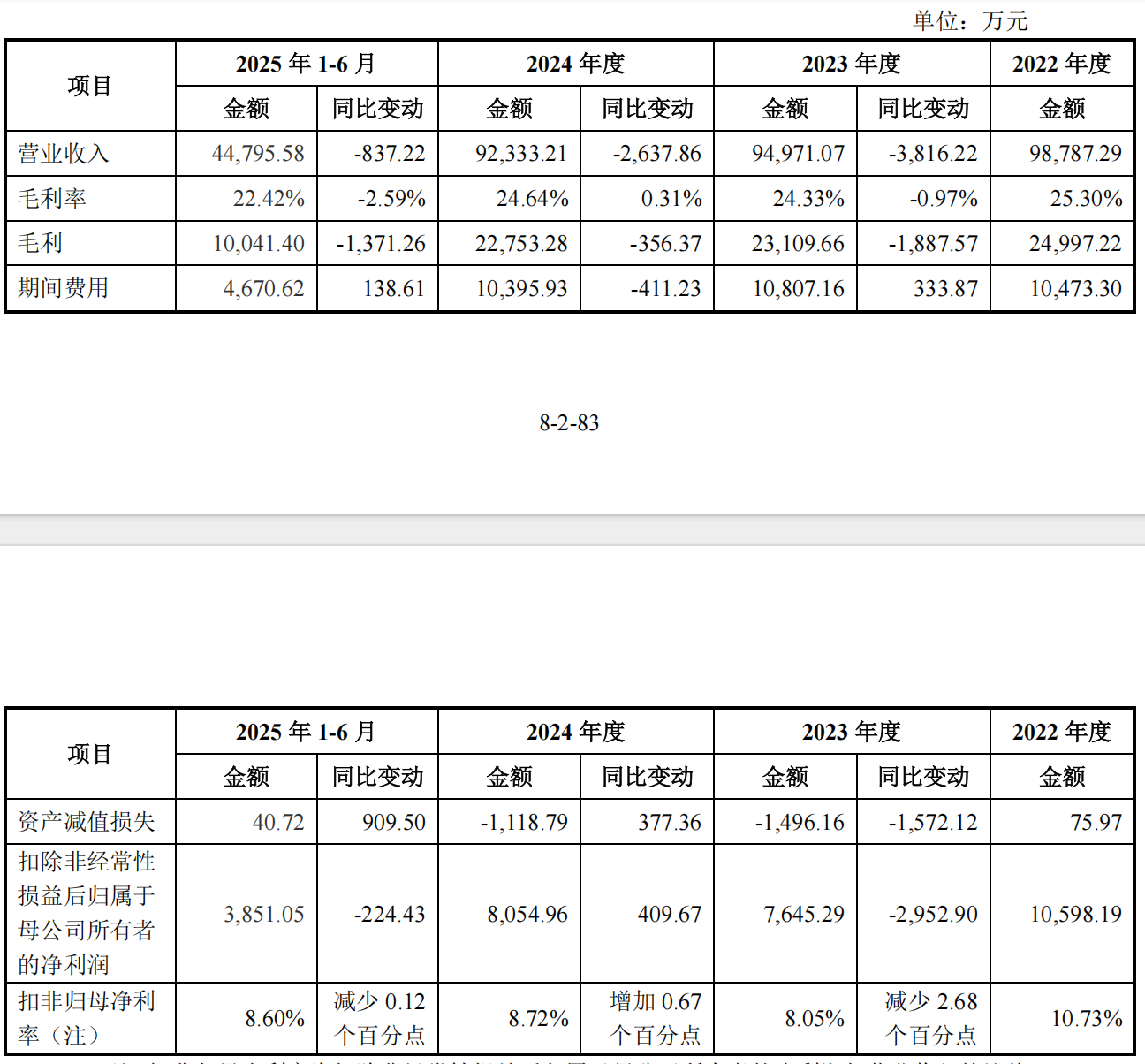 期内,公司扣非净利润分别为1.06亿元、7645.29万元、8054.96万元和3851.05万元。