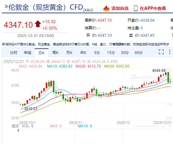现货黄金报4347.10美元/盎司,涨幅0.35%,盘中一度涨超1.5%。