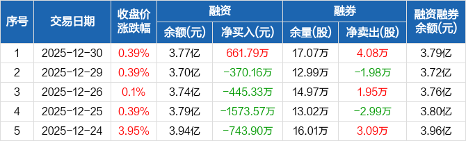 亚星锚链:融资净买入661.79万元,融资余额3.77亿元(12-30)