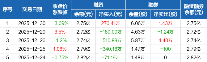 天宸股份:融资净买入276.41万元,融资余额2.75亿元(12-30)