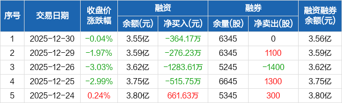 三孚新科:连续4日融资净偿还累计2439.76万元(12-30)
