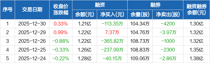 沪农商行:融资净偿还113.35万元,融资余额1.21亿元(12-30)