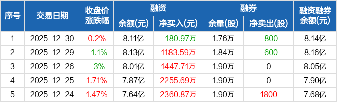 盛美上海:融资净偿还180.97万元,融资余额8.11亿元(12-30)