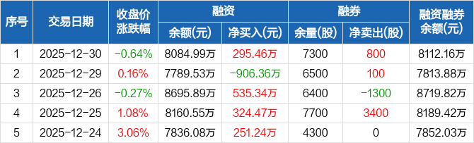 汇通控股:融资净买入295.46万元,融资余额8084.99万元(12-30)