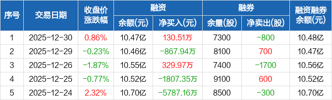 华勤技术:融资净买入130.51万元,融资余额10.47亿元(12-30)