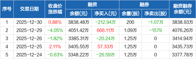 春立医疗:融资净偿还212.94万元,融资余额3838.48万元(12-30)