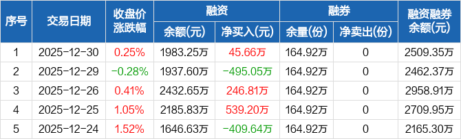 中证1000ETF易方达:融资净买入45.66万元,融资余额1983.25万元(12-30)