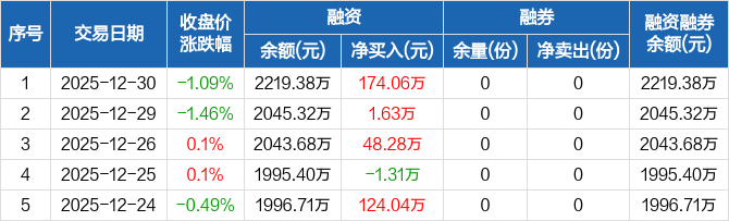 恒生消费ETF:连续3日融资净买入累计223.97万元(12-30)
