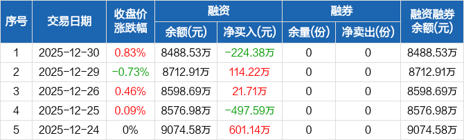 中概互联网ETF:融资净偿还224.38万元,融资余额8488.53万元(12-30)