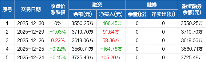 日经ETF:融资净偿还160.45万元,融资余额3550.25万元(12-30)