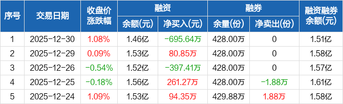 半导体ETF:融资净偿还695.64万元,融资余额1.46亿元(12-30)