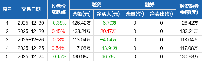 金融地产ETF:融资净偿还6.79万元,融资余额126.42万元(12-30)