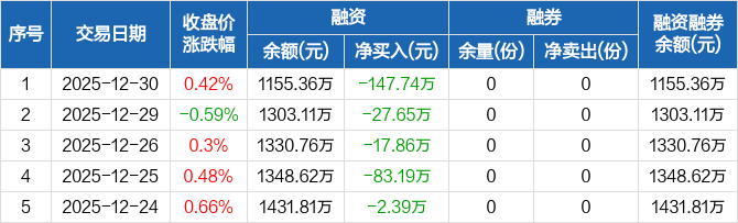 创业板ETF天弘:连续6日融资净偿还累计299.95万元(12-30)