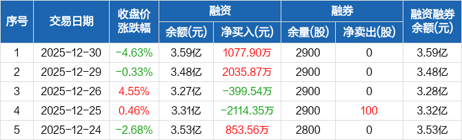 菲菱科思:融资净买入1077.9万元,融资余额3.59亿元(12-30)