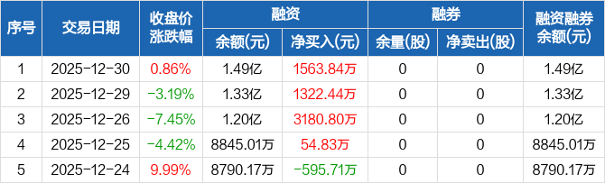 集泰股份:融资余额1.49亿元,创历史新高(12-30)
