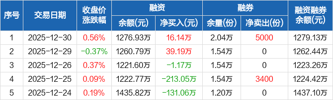 A50ETF:融资净买入16.14万元,融资余额1276.93万元(12-30)
