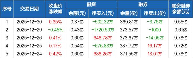 沪深300ETF:融资净偿还592.32万元,融资余额9.37亿元(12-30)