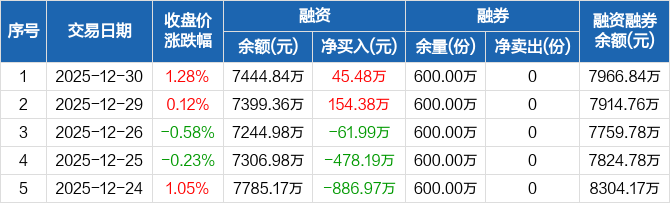 芯片ETF广发:融资净买入45.48万元,融资余额7444.84万元(12-30)