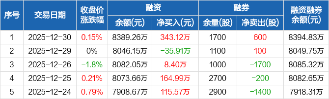 富士莱:融资净买入343.12万元,融资余额8389.26万元(12-30)
