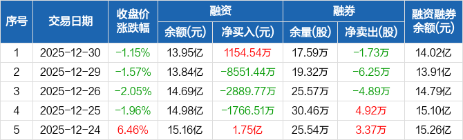 中材科技:融资净买入1154.54万元,融资余额13.95亿元(12-30)