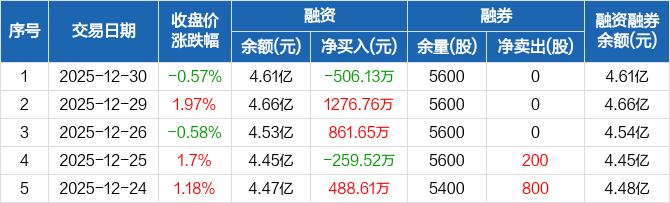 北化股份:融资净偿还506.13万元,融资余额4.61亿元(12-30)