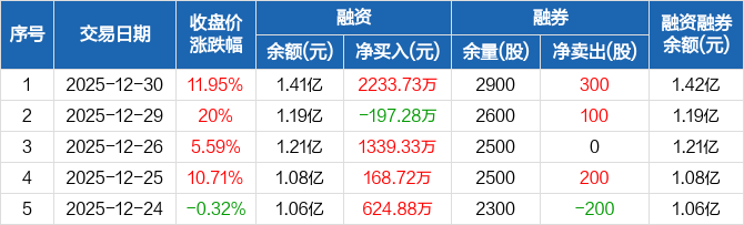 恒勃股份:融资净买入2233.73万元,融资余额1.41亿元(12-30)