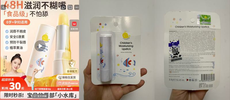 冬季气候干燥,儿童唇部皮肤娇嫩易干裂,儿童唇膏也持续热销。近期,新京报记者调查发现,网络平台在售的热销儿童唇膏中,存在诸多乱象:部分商家违规以“食品级”为宣传噱头误导消费;部分产品宣称可治疗唇炎,违反化妆品禁止明示或暗示医疗功效的宣传红线;还有部分跨境电商售卖的进口产品未在国内备案,却在页面虚标儿童化妆品“小金盾”标识。