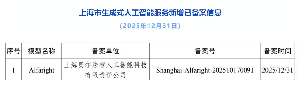 12月31日,据“网信上海”消息,截至12月31日,上海市新增1款已完成备案的生成式人工智能服务,累计已完成138款生成式人工智能服务备案。