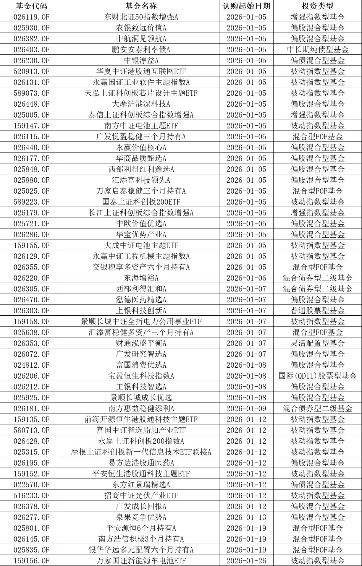 Wind数据显示,2026年元旦假期后,公告启动发行的基金数量已达51只(份额合并计算)。2026年首个交易日,1月5日便有24只产品集中面世。