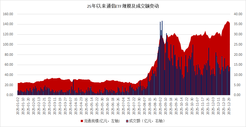 今年以来通信ETF在A股表现优异,AI叙事的助力下,截至12月31日收盘,通信ETF(515880)年内涨幅125.81%,居全市场ETF第一名!