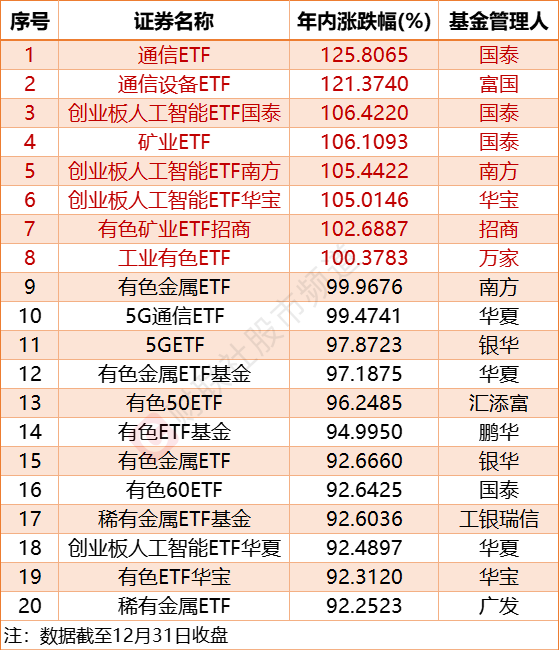 2025年8只ETF实现翻倍 超200只ETF年内涨超50%