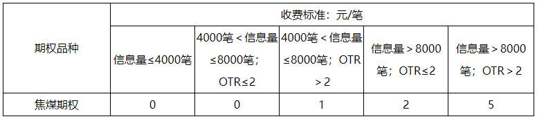 焦煤期权收取申报费,按日收取。收费标准如下:
