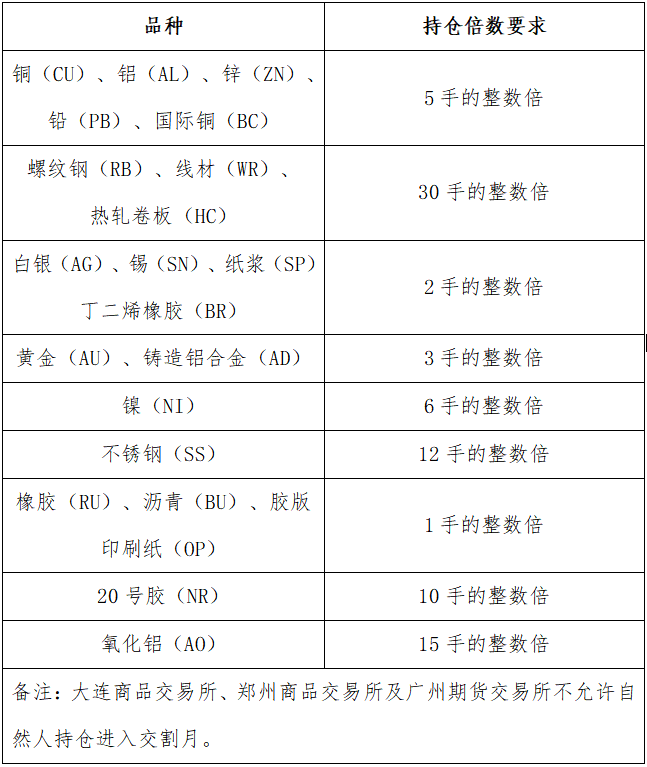 如实际调整日期或收取比例与上述不符,请以官网最新公告为准。各品种限仓细则请参见各交易所相关管理办法,或致电400-980-1818详询。
