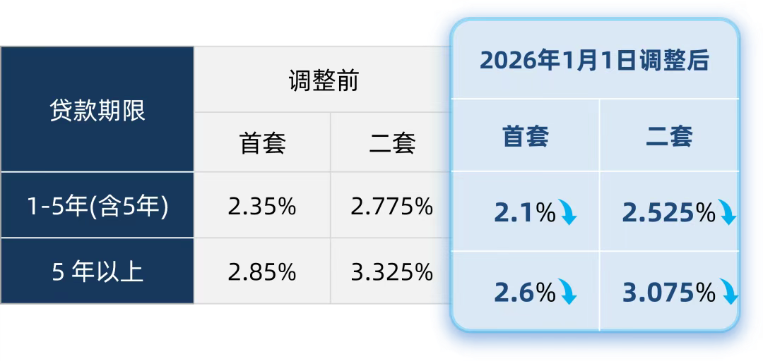 上海市公积金管理中心表示,根据通知规定,2025年5月8日前发放的未到期个人住房公积金贷款,自2026年1月1日起,将执行调整后利率。调整后,5年以下(含5年)和5年以上首套个人住房公积金贷款利率分别为2.1%和2.6%,5年以下(含5年)和5年以上第二套个人住房公积金贷款利率分别为2.525%和3.075%。本市将于2026年1月1日起统一批量下调,无需借款人申请。