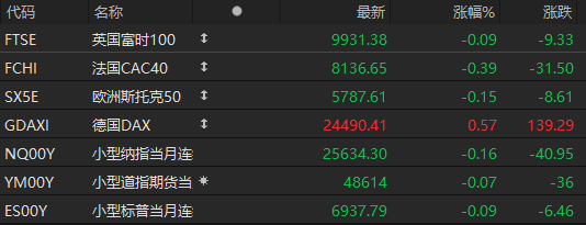周三盘前,2025年美股最后一个交易日,美股三大股指期货震荡盘整,欧洲主要指数多数微跌。截至发稿,纳斯达克100指数期货跌0.16%,道指期货跌0.07%,标普500指数期货跌0.09%。