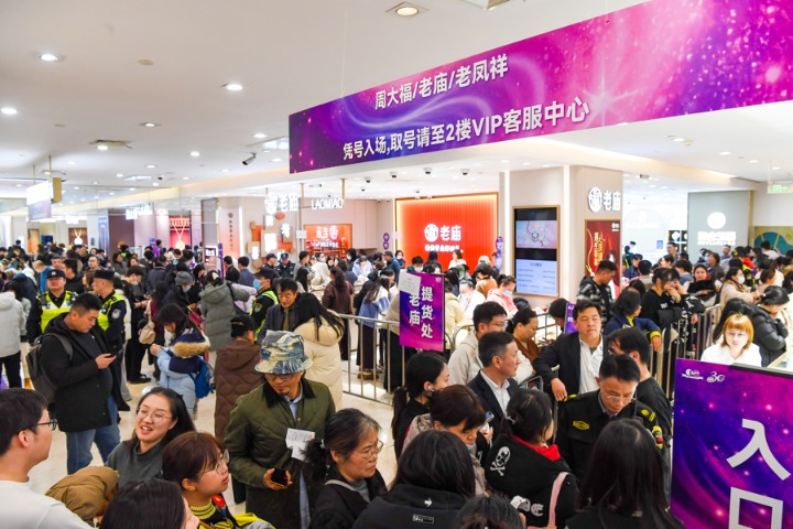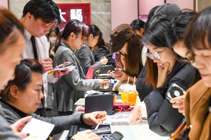 周大福、老庙、老凤祥都需要提前取号,避免人流过密。 文汇报记者张伊辰摄