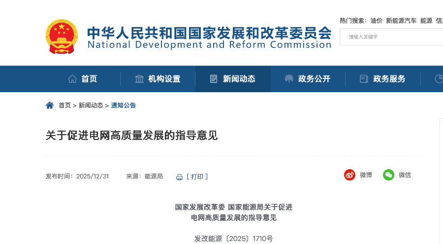 12月31日,国家发展改革委、国家能源局发布《关于促进电网高质量发展的指导意见》(以下简称《指导意见》)。