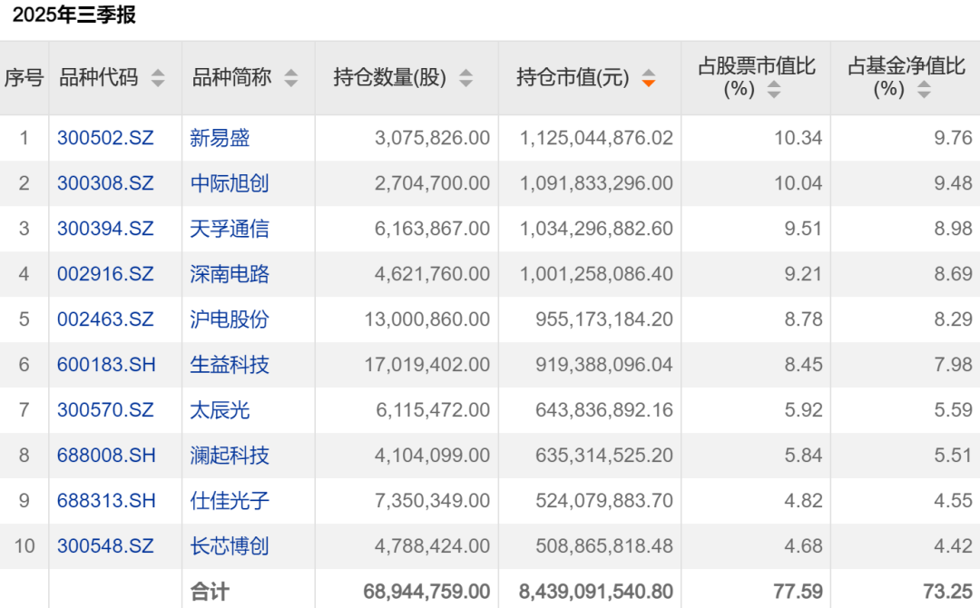 以下是该基金2025年三季度末的重仓股情况。