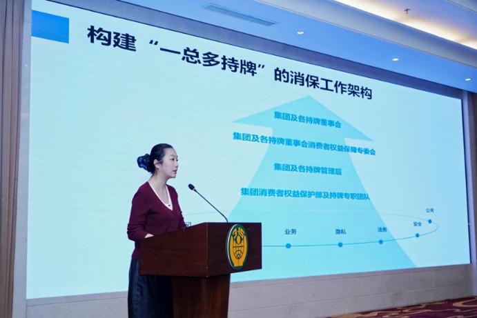 杭州市消费者权益保护委员会秘书长吴国坚以“投诉直通车”建设为切入点,分享了放心消费守护计划及“一张名片、一通电话、一封问卷、一份保障”的“四个一”工作机制。